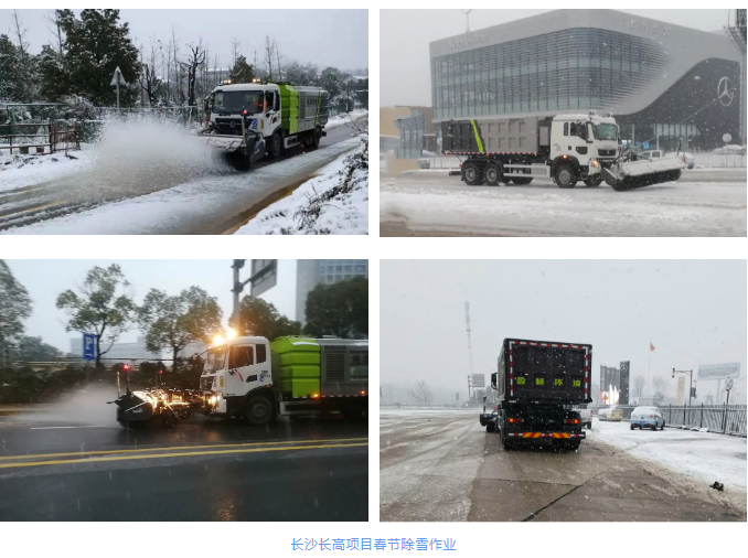 星城长沙,瑞雪迎新春。为了确保春节期间城市干净整洁,长高项目紧急制定应急预案,快速反应,第一时间投入到除雪净路攻坚战中,利用大型机械化除雪车辆对冰雪路面进行集中除雪、洗扫作业,保障市民春节期间出行安全。